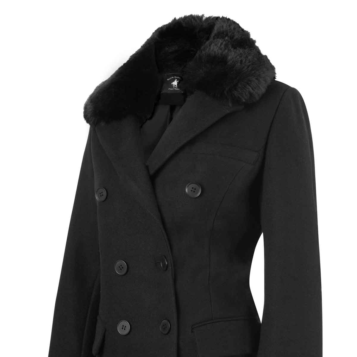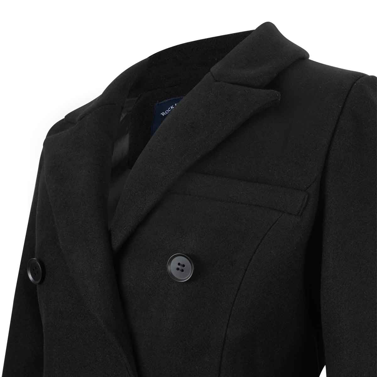 Abrigo para dama fabricado en paño premium, con diseño cruzado, solapa desmontable y acabado liso y elegante. Es cálido, suave y perfecto para looks formales o casuales durante otoño e invierno.