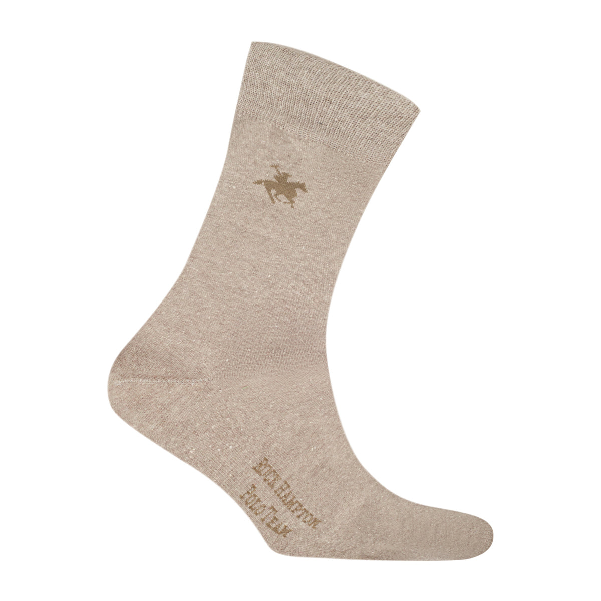 Dale un toque de estilo a tu atuendo con nuestros calcetines ligeros y cómodos en color arena. Con un diseño liso y un elegante bordado de caballo, estos calcetines son el complemento perfecto para lograr un look moderno y sofisticado. Son ideales para cualquier ocasión, ya sea una reunión formal o un día de oficina.