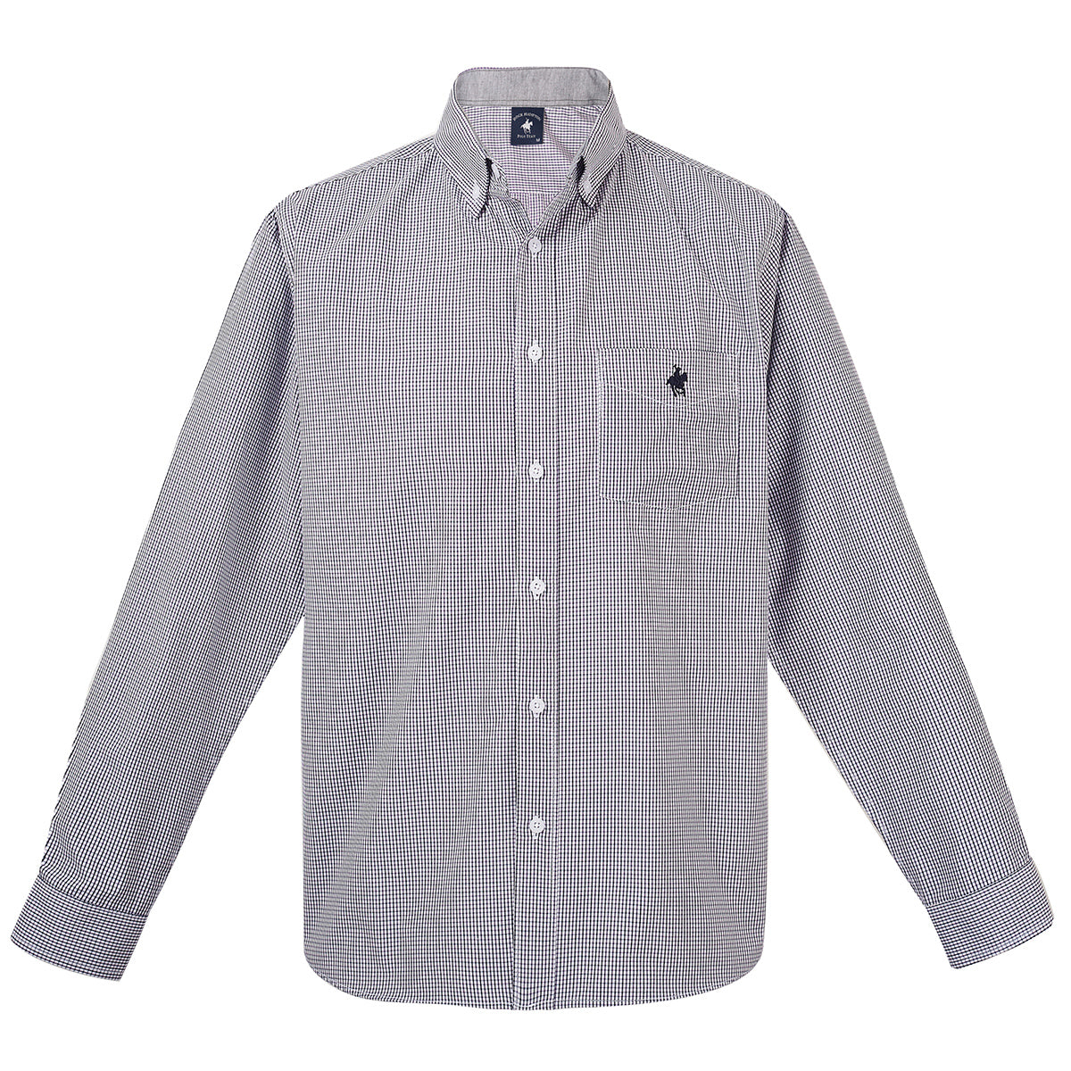 Camisa de manga larga para caballero, con textura en micro cuadros color morado y blanco. El clásico diseño casual y elegante.