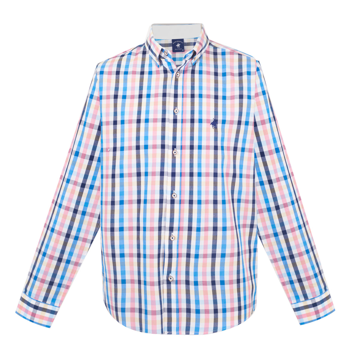 Eleva tu estilo con nuestra camisa de hombre a cuadros con bordado de caballito.