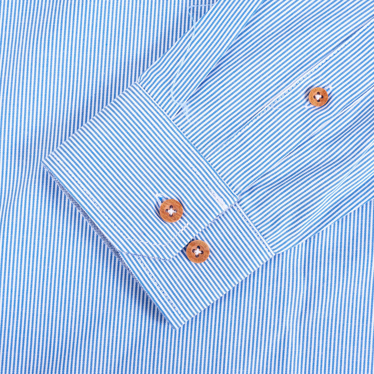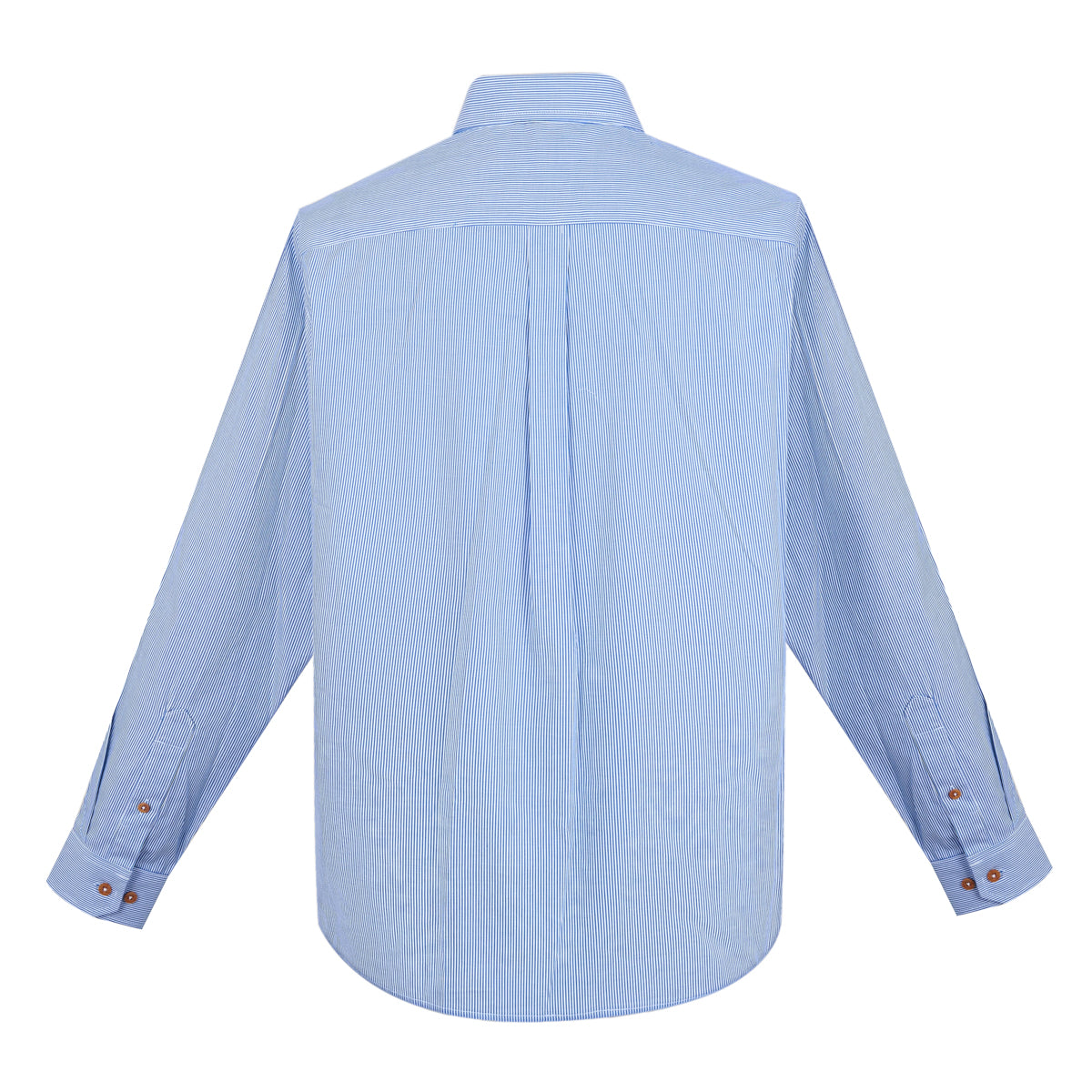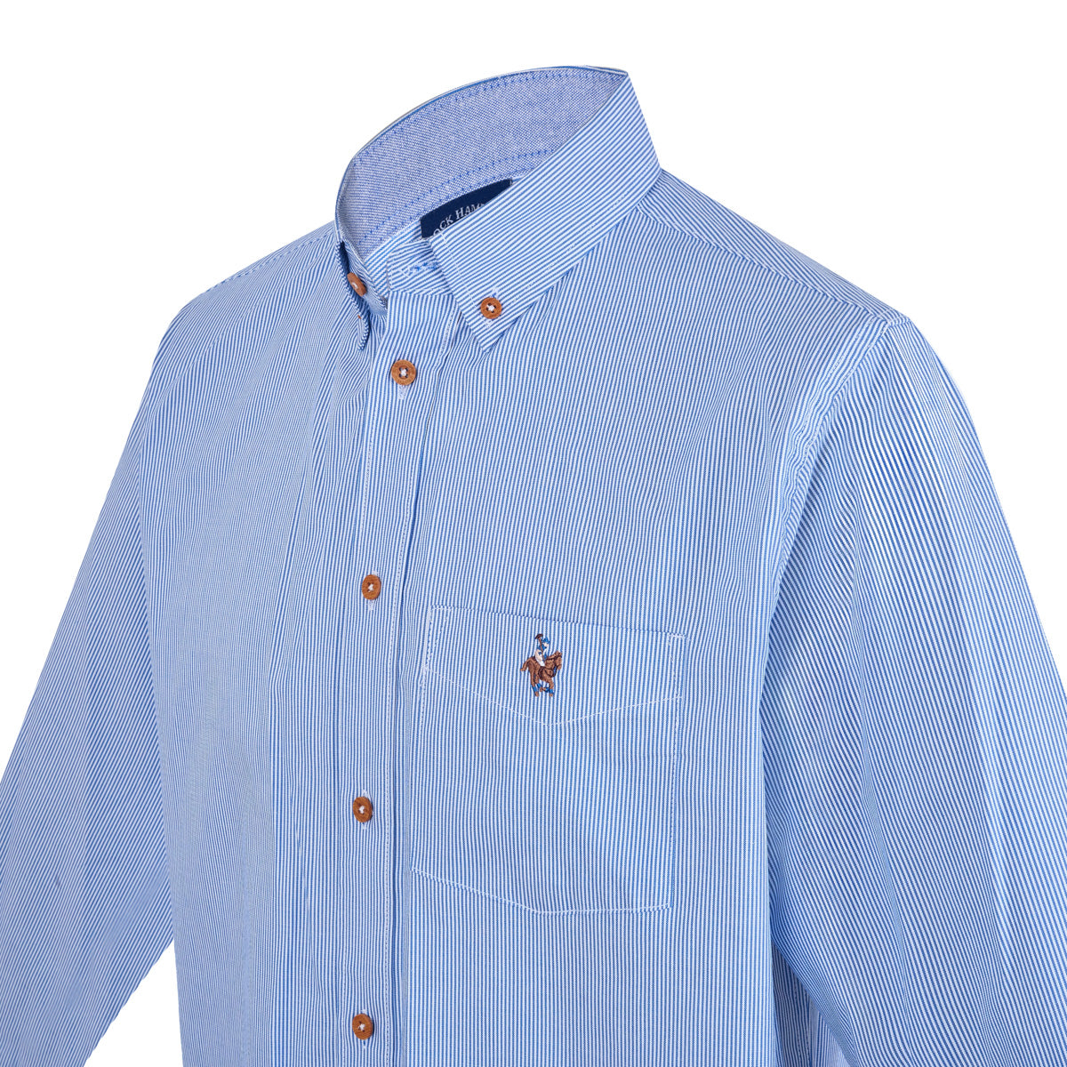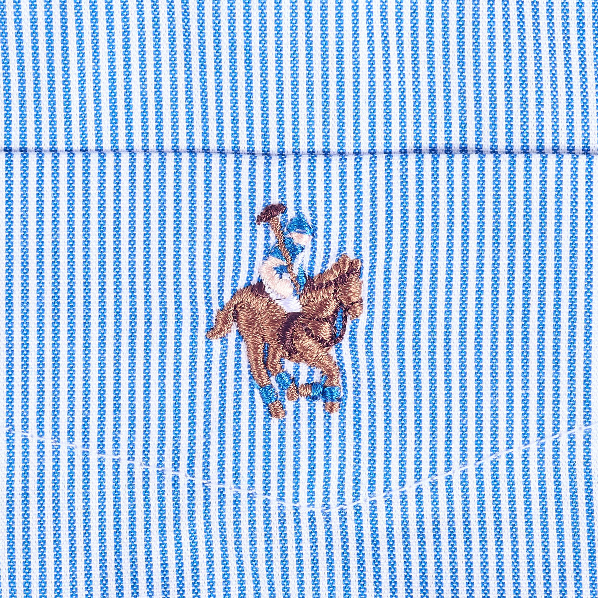 Clásico con energía fresca. Camisa de algodón con rayas dinámicas, corte regular y bordado multicolor en el pecho.