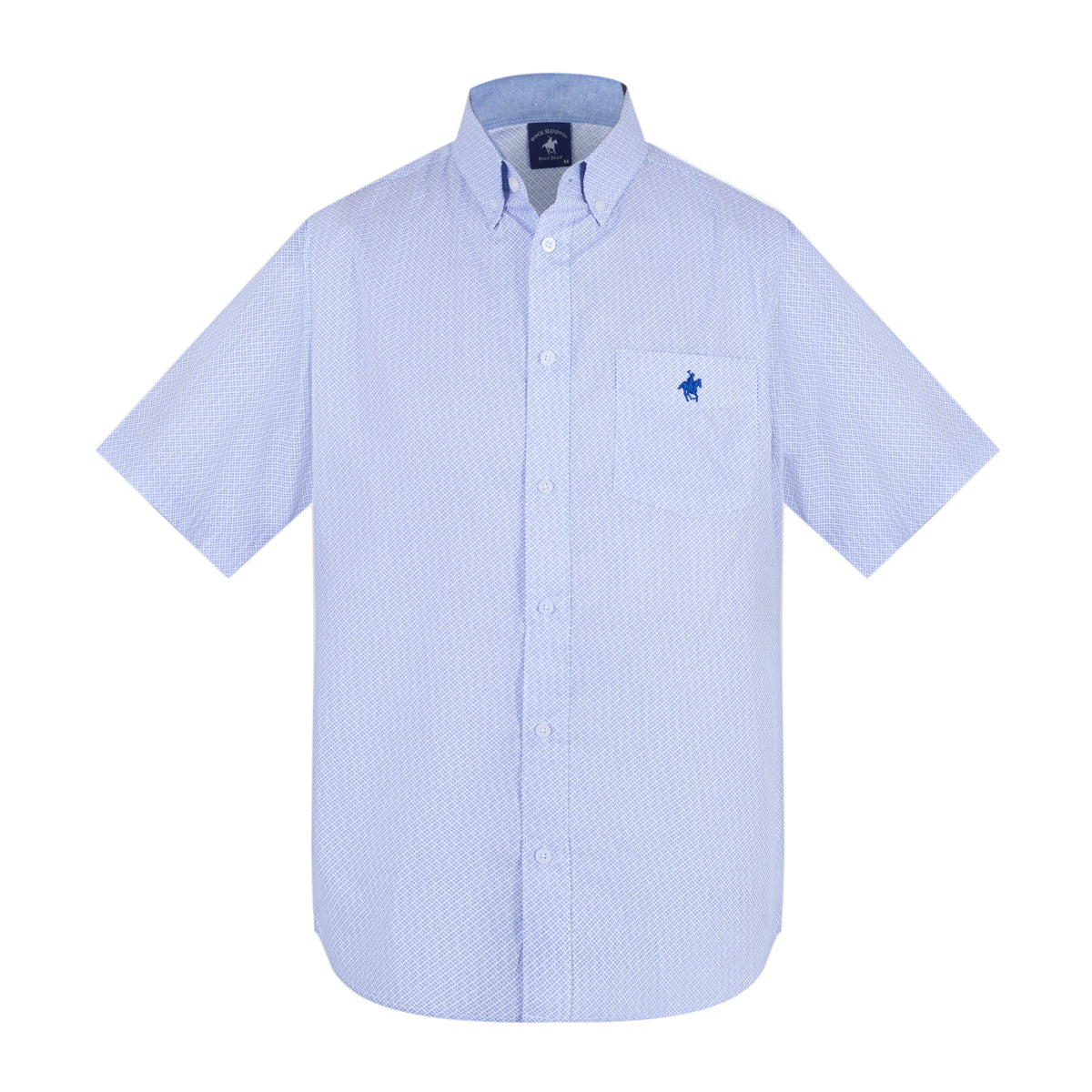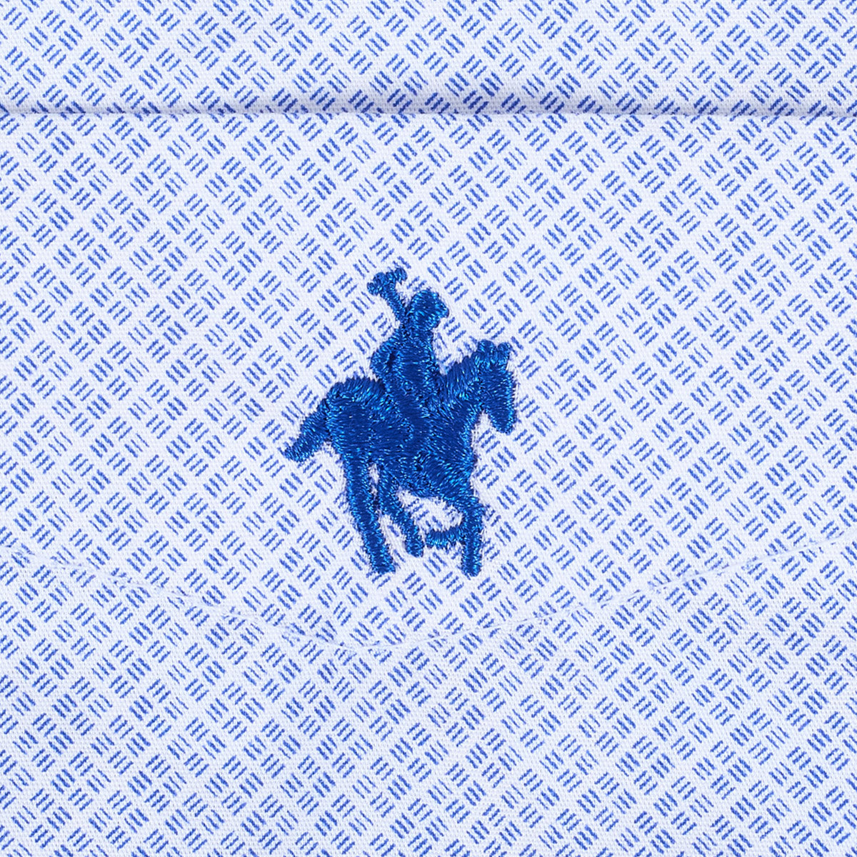 CAMISA CABALLERO BUTTON DOWN, BOLSA DELANTERA CON BORDADO MICRO MALLA BLANCA