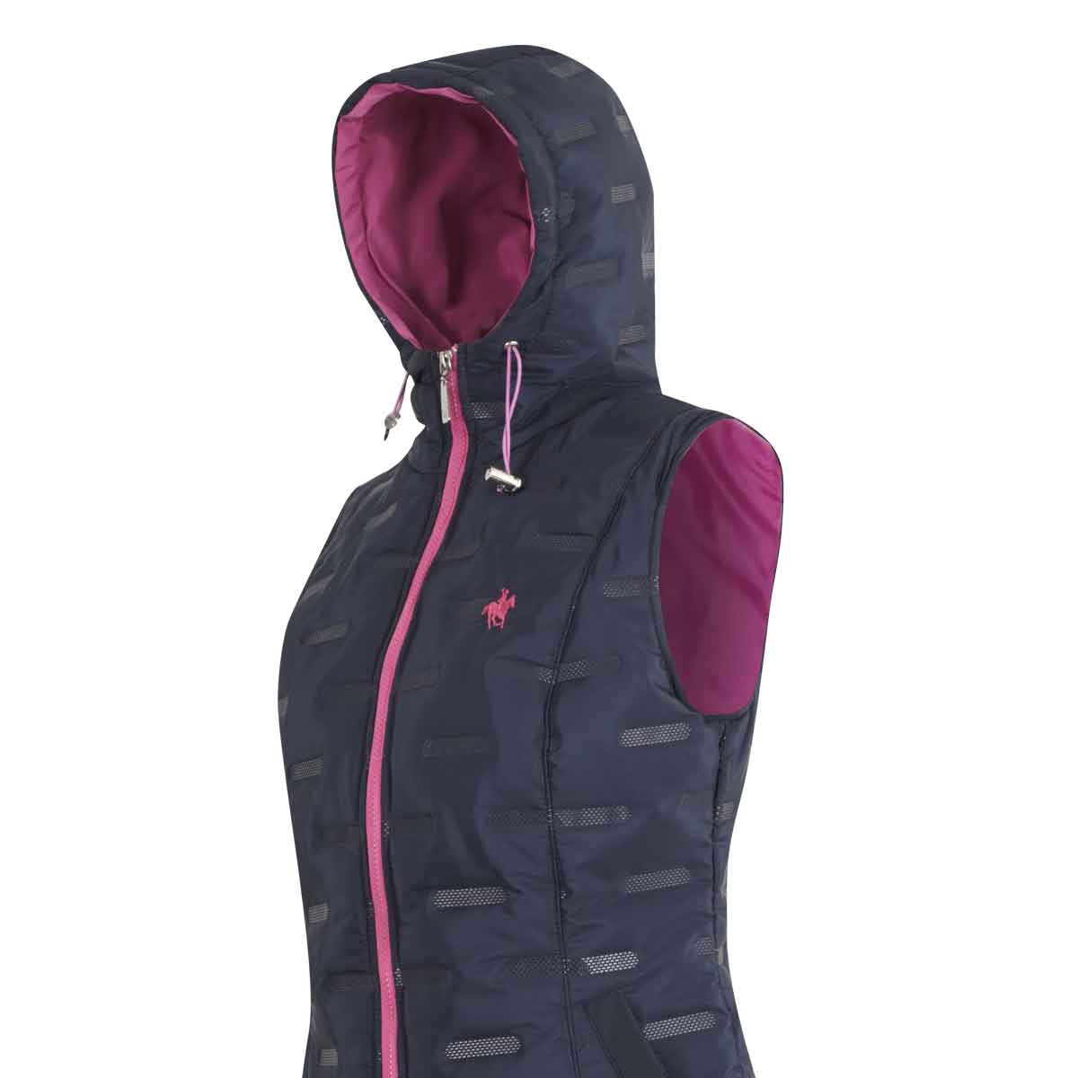 Este chaleco para dama está confeccionado en poliéster fino de alta calidad, con un elegante capitonado de ultrasonido que aporta textura moderna y un acabado limpio. Su corte princesa estiliza la figura de manera natural, mientras que la capucha fija y las bolsas con vivo ofrecen funcionalidad y un toque contemporáneo.