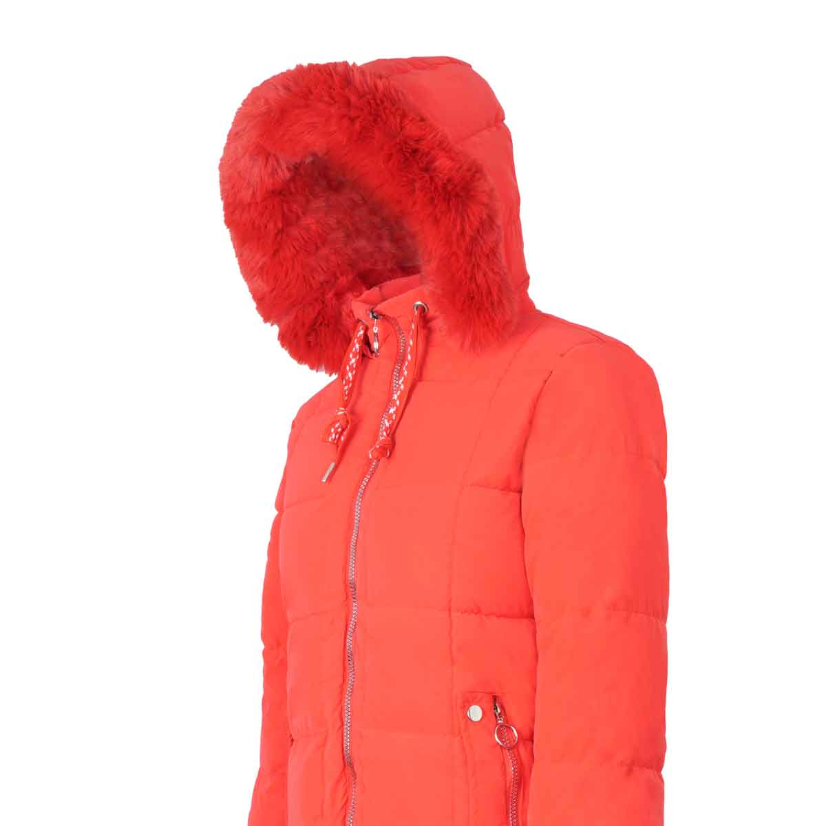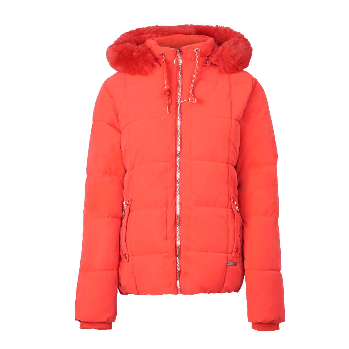 Esta chamarra para dama está confeccionada en nylon ligero y resistente, con un elegante capitonado horizontal que aporta textura y un look contemporáneo. Su cuello desmontable permite adaptar la prenda al clima y al estilo que prefieras, mientras que el cinturón ajustable define la silueta y realza la figura. La bolsa delantera añade funcionalidad sin comprometer la estética.