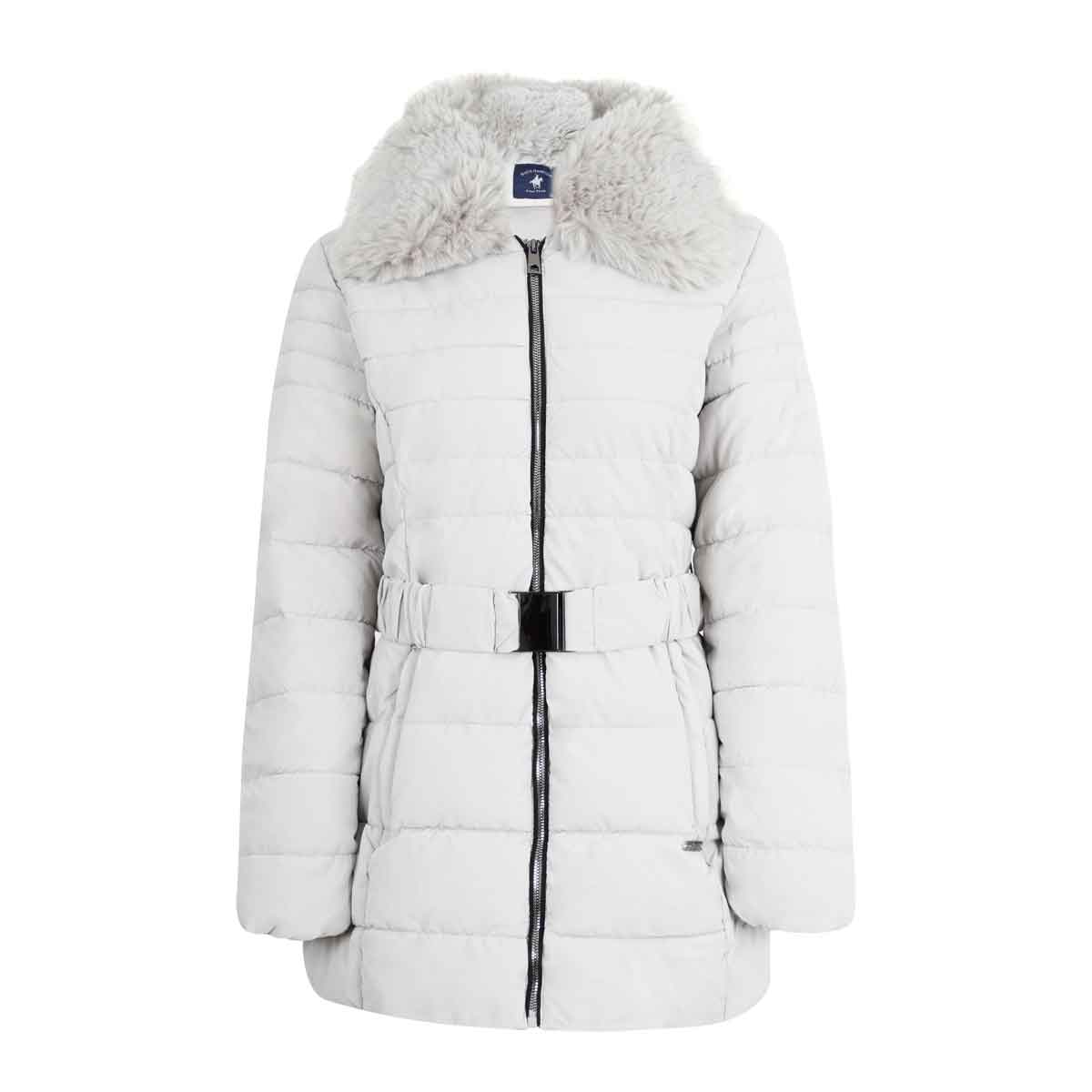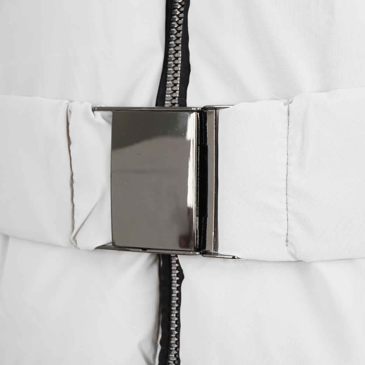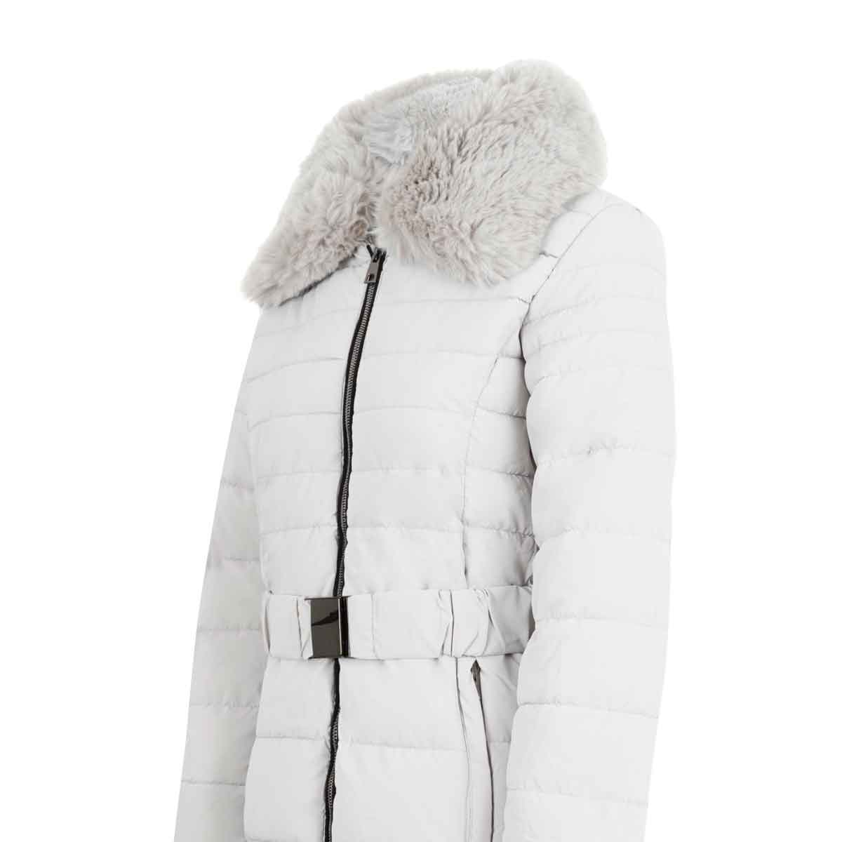 Chamarra para dama confeccionada en nylon ligero y resistente, con capitonado horizontal que aporta textura y estilo. Incluye cuello desmontable, cinturón ajustable que define la silueta y bolsa delantera para mayor funcionalidad.