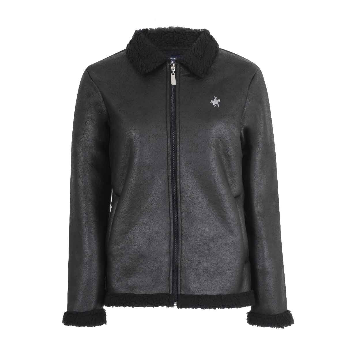 Chamarra estilo Bomber Piloto para dama, confeccionada con suede suave al tacto y borrega interior que brinda una sensación cálida y protectora. Cuenta con tejido en pretina y puños para un ajuste cómodo y estilizado.