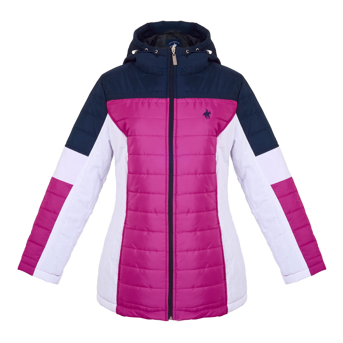 Energía y color para días fríos. Chamarra tipo parka para dama con capitonado horizontal, capucha fija y diseño práctico.