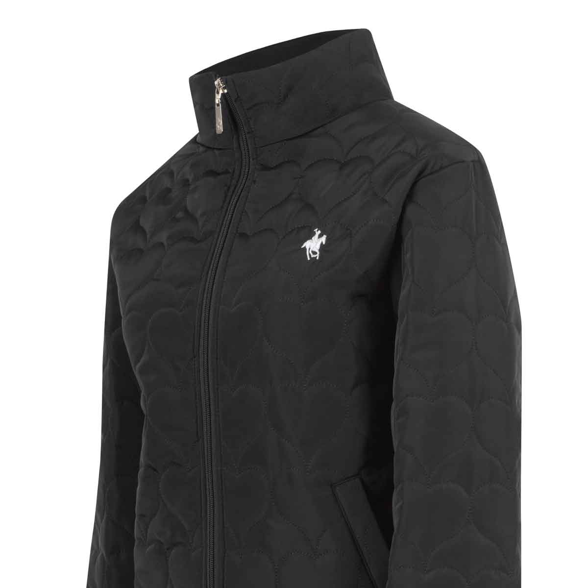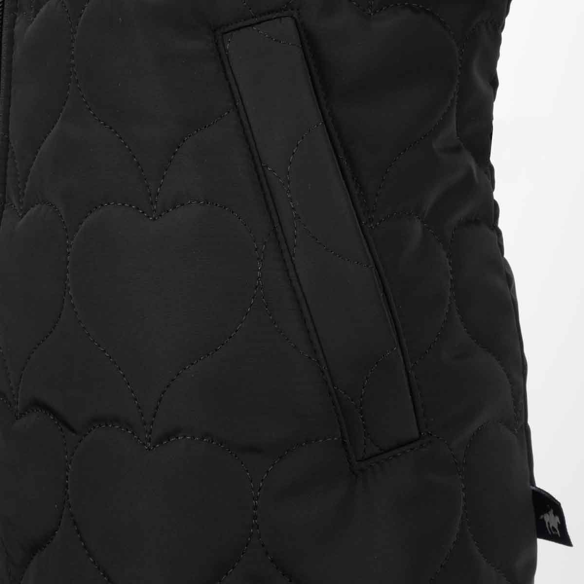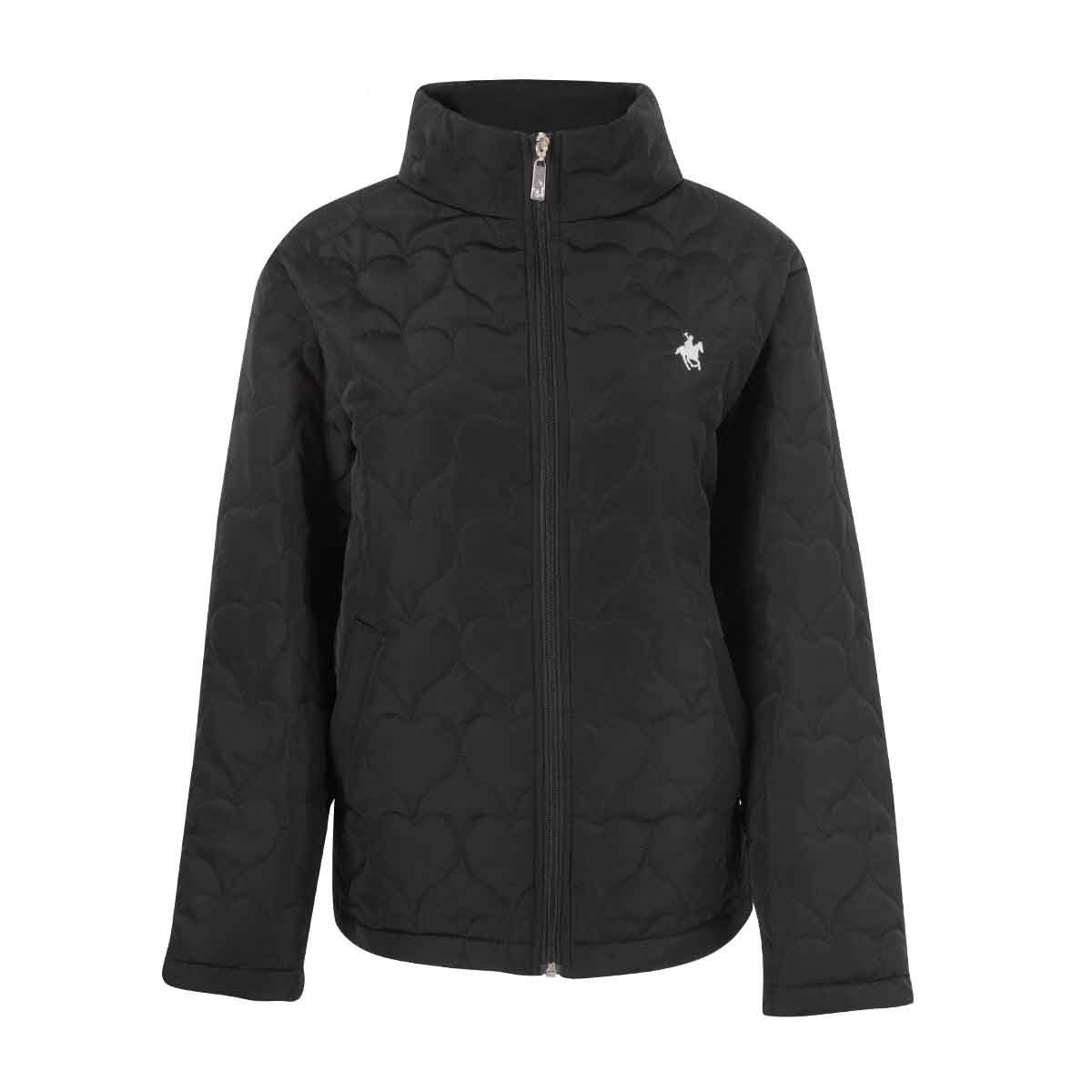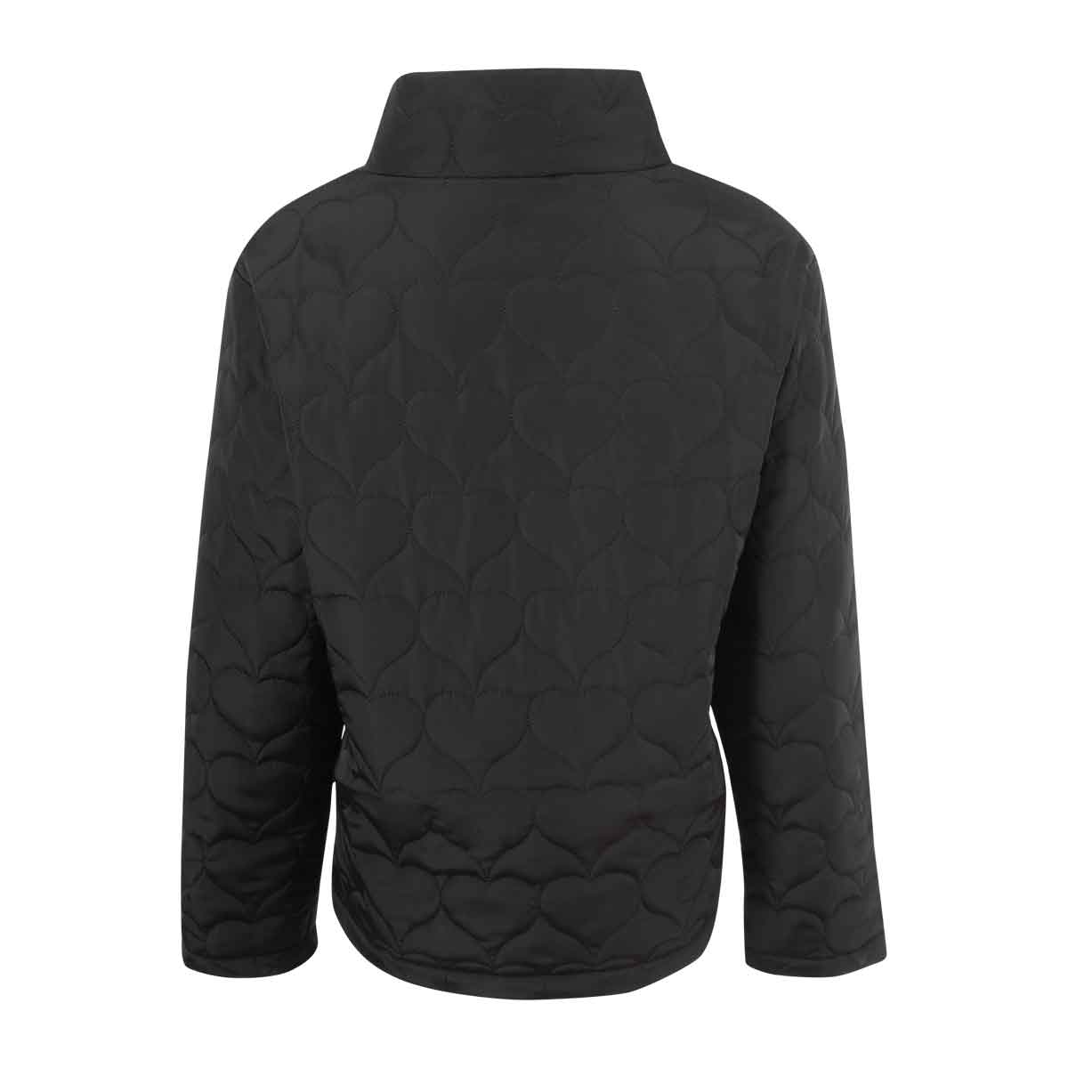 Chamarra para dama elaborada en poliéster fino y ligero, con un encantador capitonado de corazones grandes que aporta un estilo único y femenino. Cuenta con cuello alto para mayor abrigo y bolsas con vivo que le dan un acabado moderno y funcional.