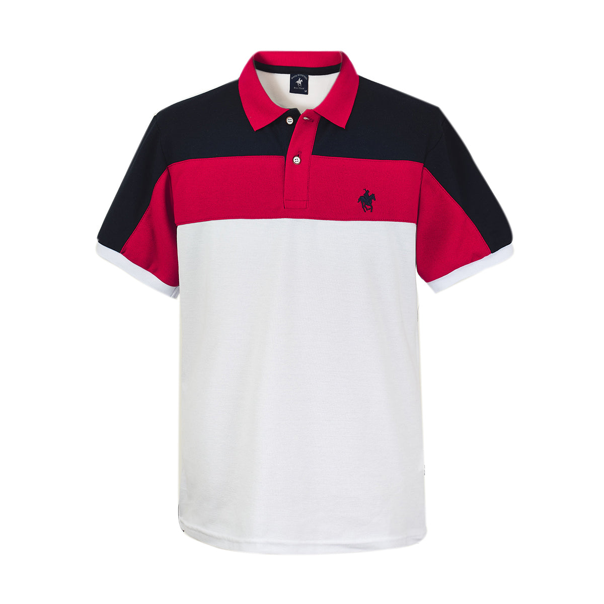Playera Polo para hombre color blanco, seccionada en pecho en combinación de marino y rojo, con bordado en el pecho y número en la espalda. Nuestra clásica silueta atemporal, elegante y casual.