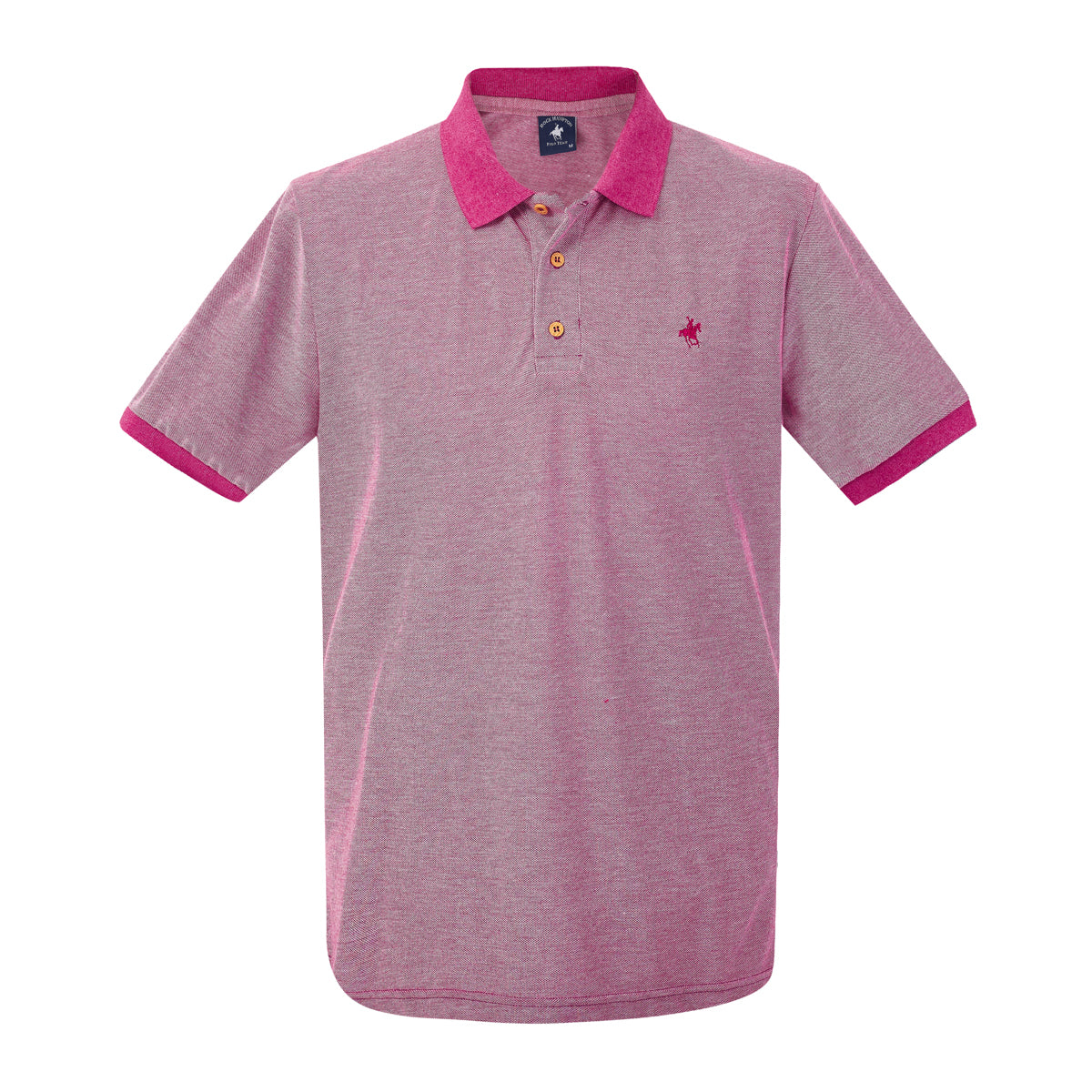 Playera Polo para hombre en color vino jaspe, con cuello y puños tejidos en color vino solido y bordado en pecho. Nuestra clásica silueta atemporal, elegante y casual.
