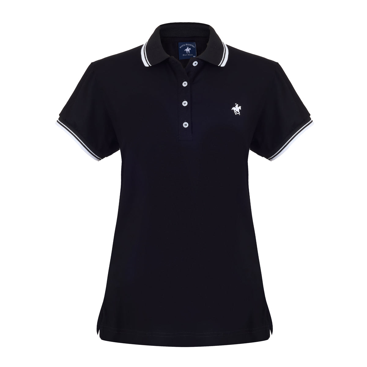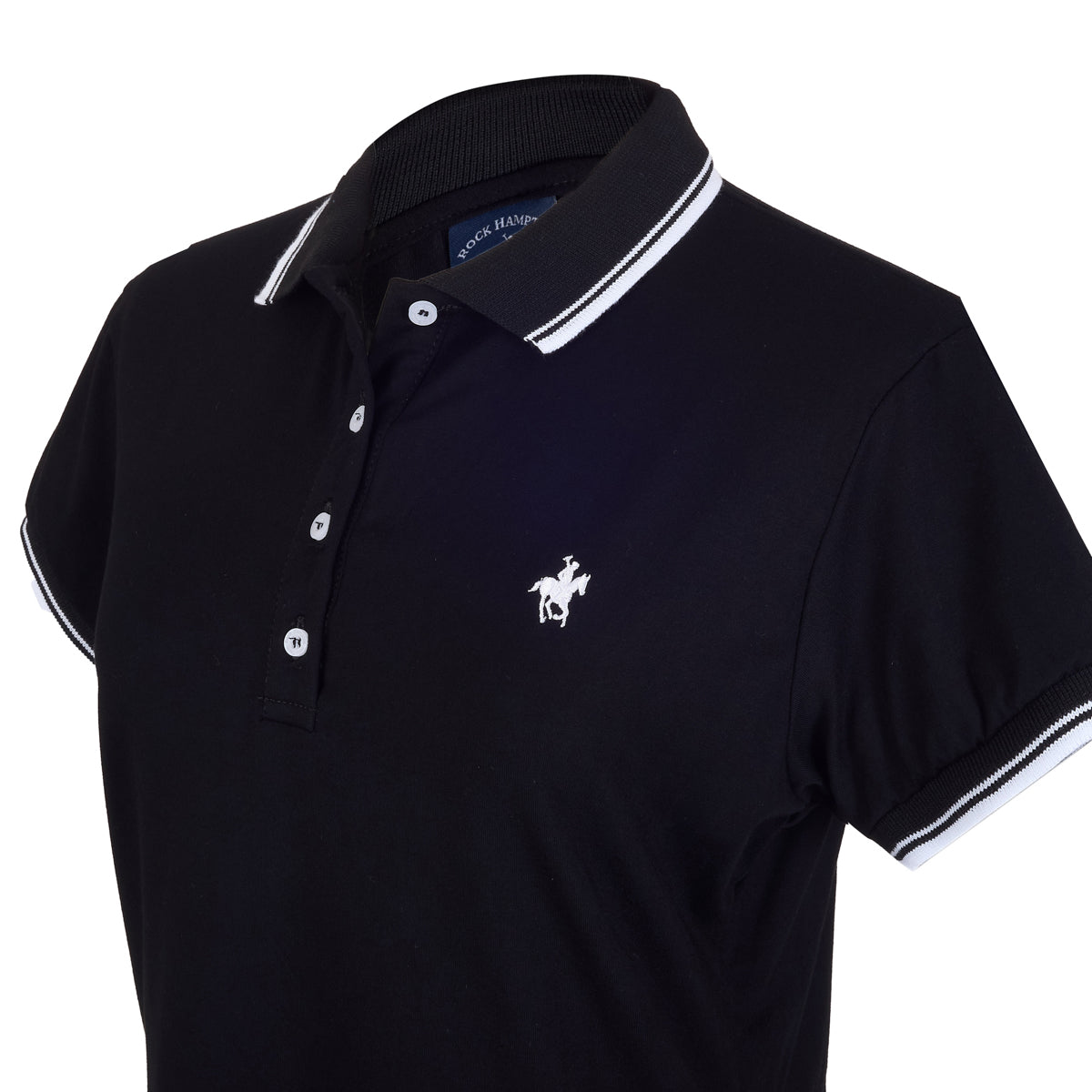Refleja elegancia con nuestro polo para dama confeccionado en viscosa ligera. Tejido en cuello y puños y bordado de caballo en pecho aportan un toque sofisticado, ideal para looks femeninos y elegantes.
