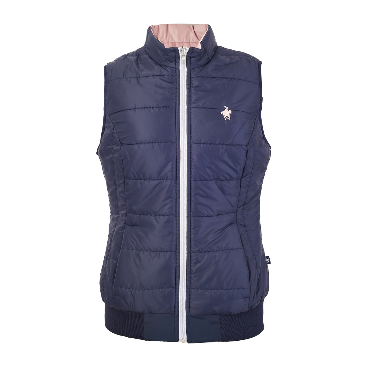Chaleco doble vista de nylon light color marino con capitonado horizontal e interior de poliéster fino color malva. Tan moderno y versátil como tu estilo de vida.