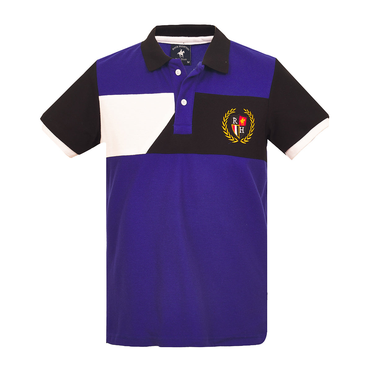 Playera Polo azul rey, con franjas en blanco y marino, escudo bordado y cuello en azul marino. Nuestra clásica silueta atemporal, elegante y casual.
