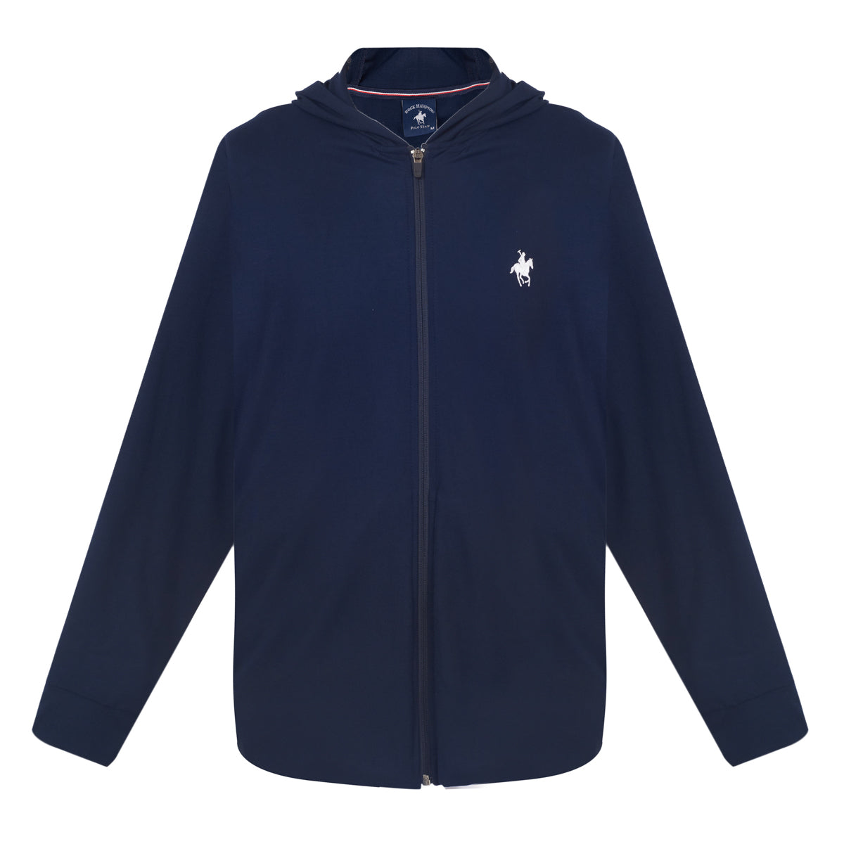 Esta sudadera azul marino de algodón con capucha es la prenda perfecta para el hombre moderno que busca comodidad y estilo a la vez. Su tejido suave y transpirable te mantendrá cálido en los días frescos y fresco en los días cálidos.